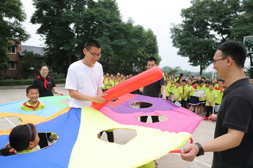 志愿者課堂結束后,一場別出心裁的趣味運動會點燃了在場所有人的熱情,志愿者與孩子們融為一體,努力為自己團隊爭取勝利,現(xiàn)場高潮不斷,笑聲不絕于耳,吶喊聲、喝彩聲回蕩在山谷、田野間。