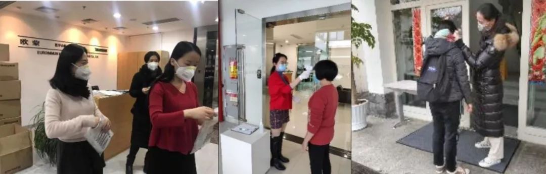 為保障員工身體健康,行政團隊為必須到現場工作的小伙伴發放口罩,在這“一罩難求”的大環境下感受到公司是用心守護每一位歐蒙人。行政的姑娘們早于大家的上班時間,提前對辦公區進行消毒處理,使每個辦公區配備消毒洗手液、板藍根沖劑、體溫槍,做好員工安全保障工作。