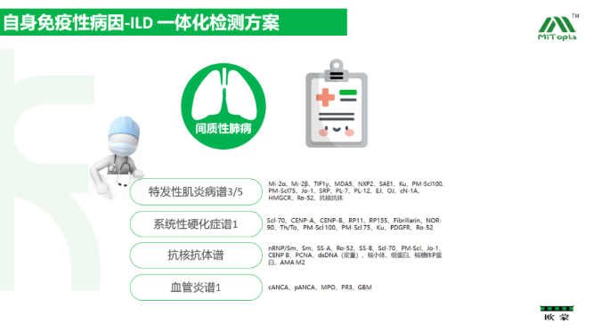 在免疫病因方面,周教授分別針對(duì)多種結(jié)締組織相關(guān)ILD(RA-ILD、SSc-ILD、SS-ILD、SLE-ILD、IIM-ILD和AAV-ILD)的臨床特點(diǎn)、風(fēng)險(xiǎn)因素和診治要點(diǎn)逐一進(jìn)行了介紹,并分享了抗MDA5抗體陽性的CTD-ILD患者疾病呈現(xiàn)快速進(jìn)展的危重案例,說明血清學(xué)抗體檢測(cè)可為臨床醫(yī)生盡早明確疾病類型及預(yù)后判斷提供詳實(shí)的依據(jù)。