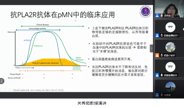 哈爾濱醫科大學附屬第一醫院檢驗科關秀茹教授則為我們帶來《腎臟病免疫學指標新進展》。關秀茹教授詳細介紹了PLA2R抗體、THSD7A、抗GBM抗體、尿調蛋白等檢測項目的最新研究結果,并著重指出PLA2R在特發性膜性腎病的診療過程中有著早期發現、判定活動度、預測疾病預后的關鍵性作用。