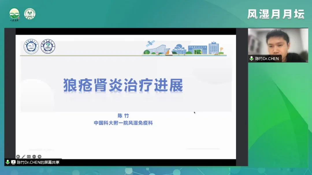 學(xué)術(shù)分享環(huán)節(jié),陳竹教授為大家講解了《狼瘡腎炎治療進(jìn)展》的主題。陳教授首先提出“中國(guó)SLE患者器官受累特征,其中腎臟受累排在前四,LN患者臨床表現(xiàn)復(fù)雜,病例變化多樣”,且特別指出了2019EULAR和2021中國(guó)SLE診療規(guī)范指南中需要腎活檢的最佳時(shí)機(jī)。