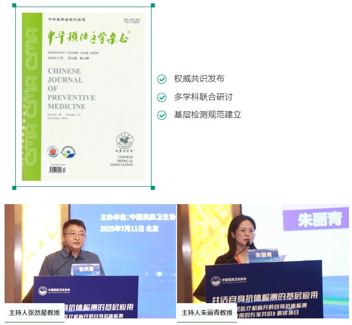 中國(guó)民族衛(wèi)生協(xié)會(huì)主辦的“共話自身抗體檢測(cè)的基層應(yīng)用暨《基層醫(yī)療機(jī)構(gòu)開(kāi)展自身抗體檢測(cè)與應(yīng)用的專家共識(shí)》發(fā)布會(huì)”,于2025年7月11日在北京·馬哥孛羅酒店隆重舉行。