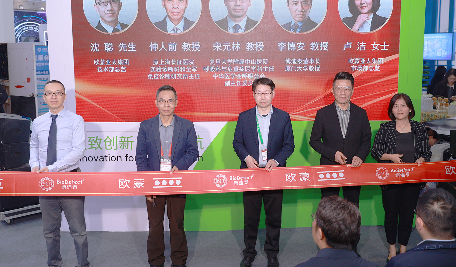 復(fù)旦大學(xué)附屬中山醫(yī)院呼吸科與危重癥醫(yī)學(xué)科主任、中華醫(yī)學(xué)會(huì)呼吸分會(huì)副主任委員宋元林教授,原上海長(zhǎng)征醫(yī)院實(shí)驗(yàn)診斷科和全軍免疫診斷研究所主任、前中國(guó)免疫學(xué)會(huì)臨床免疫分會(huì)主任委員仲人前教授,博迪泰董事長(zhǎng)、廈門大學(xué)教授李博安先生,歐蒙亞太集團(tuán)市場(chǎng)部總監(jiān)盧潔女士以及歐蒙亞太集團(tuán)技術(shù)部總監(jiān)沈聰先生親臨現(xiàn)場(chǎng),與現(xiàn)場(chǎng)嘉賓共同見(jiàn)證歐蒙呼吸道病原體檢測(cè)全方位一站式解決方案的隆重發(fā)布。
