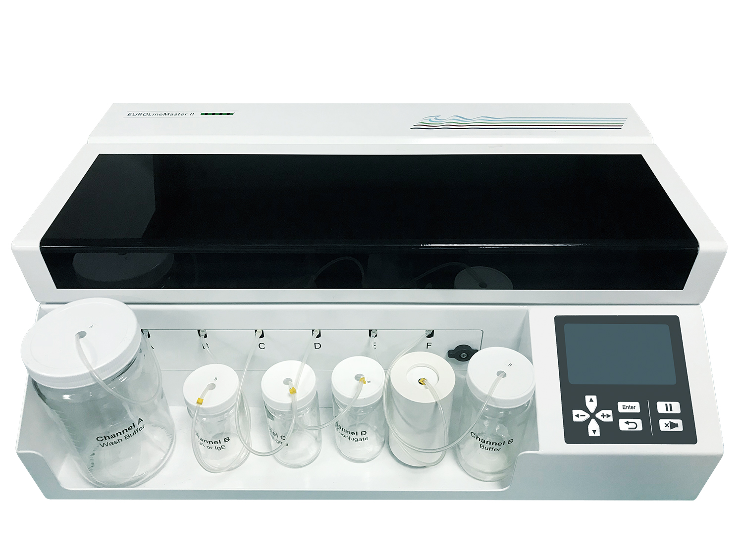 EUROLineMaster Ⅱ是一款針對免疫印跡實驗的全自動操作儀器,設(shè)備執(zhí)行檢測項目所有的孵育和洗滌步驟,以及試劑的分配。通過配備相應(yīng)的判讀儀和判讀軟件(EUROLineScan)可進行結(jié)果判讀,實現(xiàn)了免疫印跡實驗自動化、標(biāo)準(zhǔn)化檢測操作。適用于所有的歐蒙印跡膜條,在一臺設(shè)備上即可實現(xiàn)自身抗體、病原體抗體和過敏原檢測的組合。